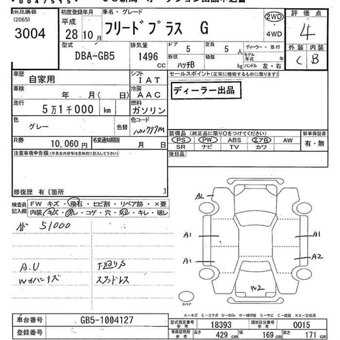 Honda FREED с аукциона Японии JU Niigata лот № 3004