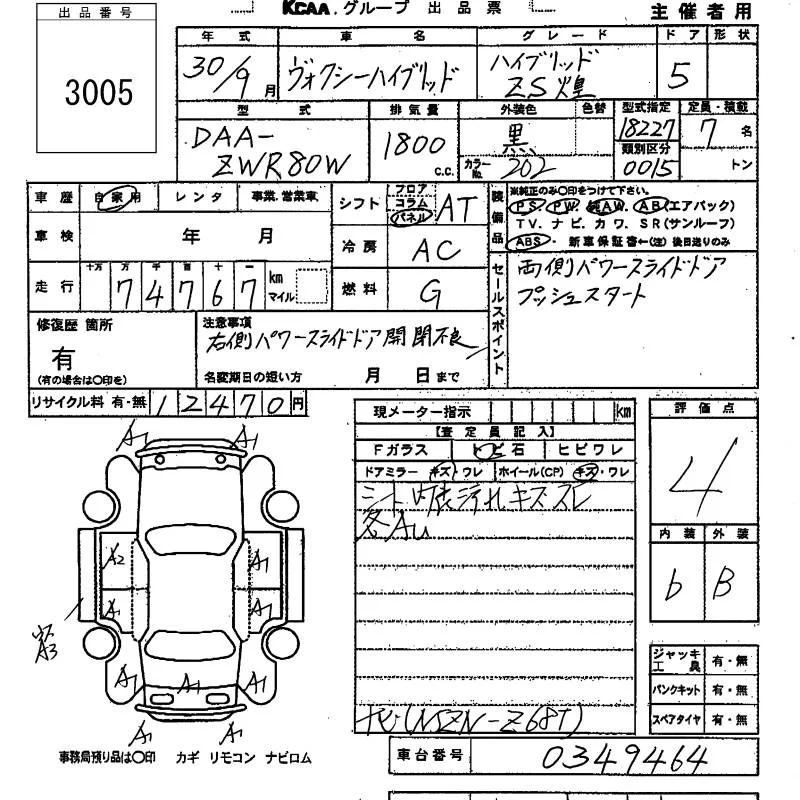 Toyota VOXY с аукциона Японии KCAA Yamaguchi лот № 3005