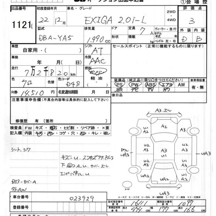 Subaru EXIGA с аукциона Японии JU Chiba лот № 1121