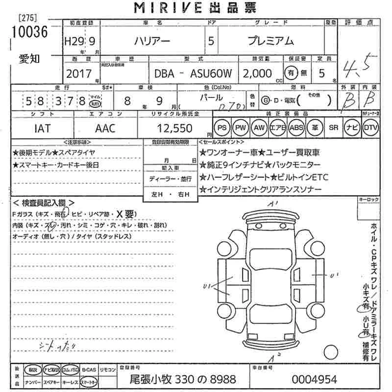 Toyota HARRIER с аукциона Японии MIRIVE Aichi лот № 10036