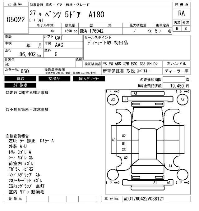 Mercedes-Benz A CLASS с аукциона Японии ARAI Bayside лот № 5022