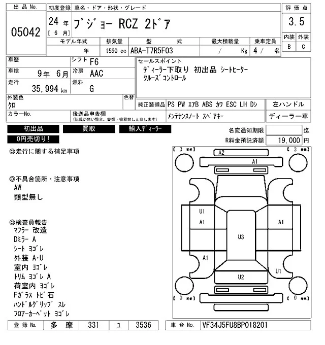 Peugeot RCZ с аукциона Японии ARAI Bayside лот № 5042