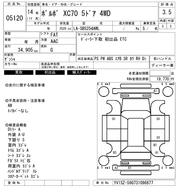 Volvo XC70 с аукциона Японии ARAI Bayside лот № 5120