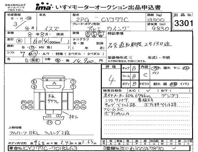 Isuzu TRUCK с аукциона Японии Isuzu Kobe лот № 3301