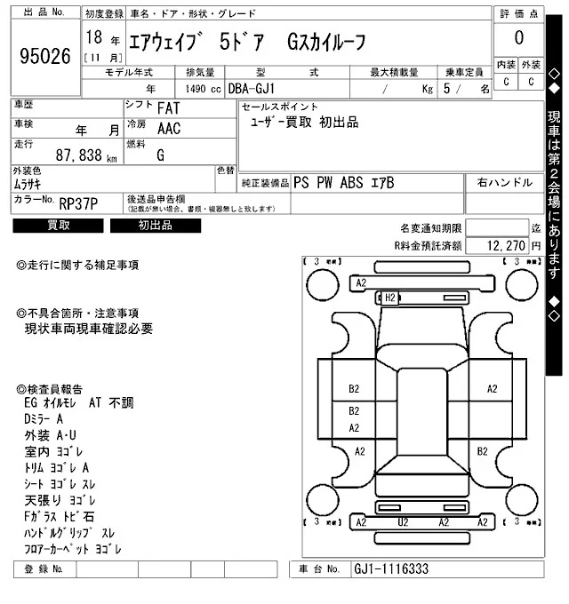 Honda AIRWAVE с аукциона Японии ARAI Bayside лот № 95026