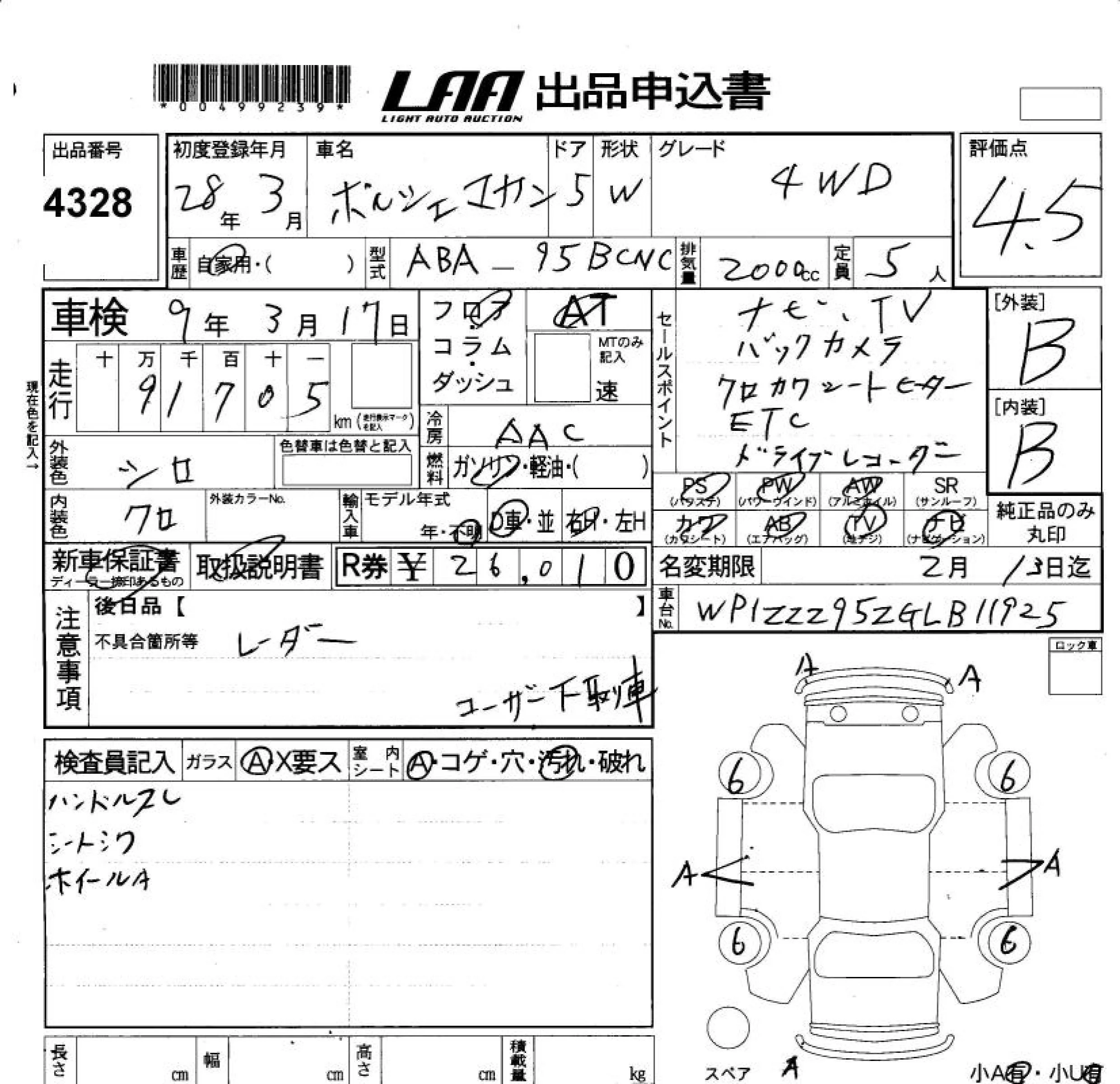 Porsche MACAN с аукциона Японии LAA Okayama лот № 4328