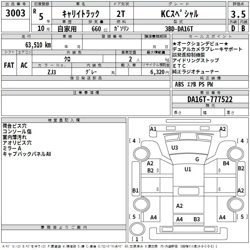 Suzuki CARRY TRUCK с аукциона Японии TAA Hyogo лот № 3003