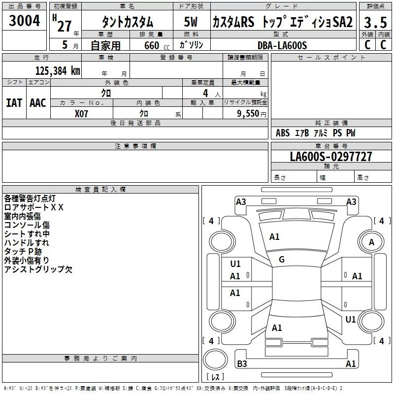 Daihatsu TANTO с аукциона Японии TAA Hyogo лот № 3004