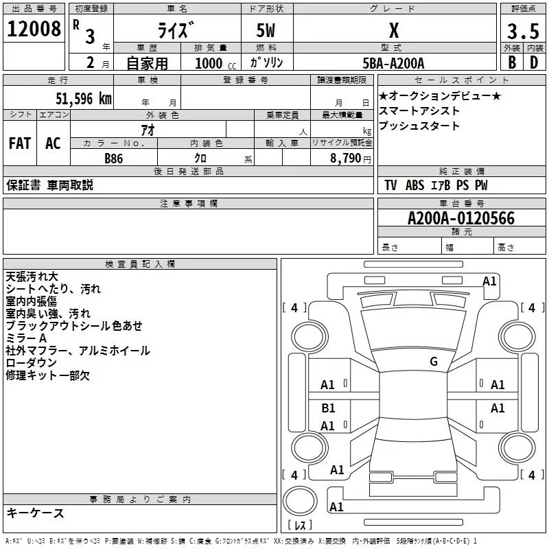 Toyota RAIZE с аукциона Японии TAA Yokohama лот № 12008