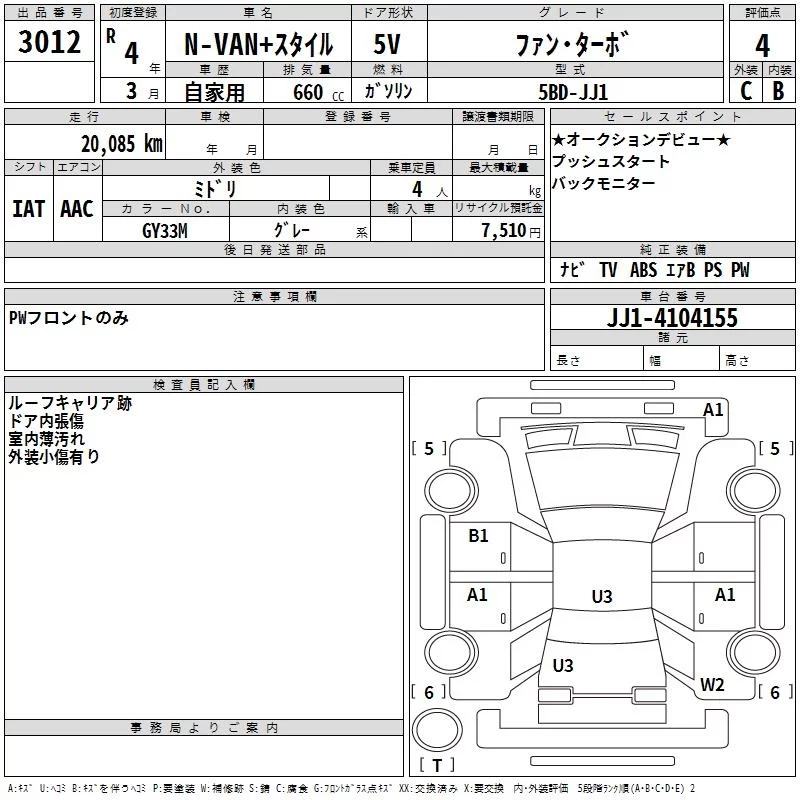 Honda N VAN с аукциона Японии TAA Hyogo лот № 3012