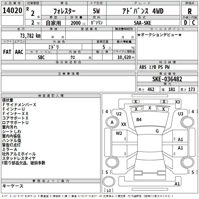 Subaru FORESTER с аукциона Японии TAA Yokohama лот № 14020