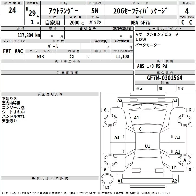 Mitsubishi OUTLANDER с аукциона Японии TAA Hyogo лот № 24