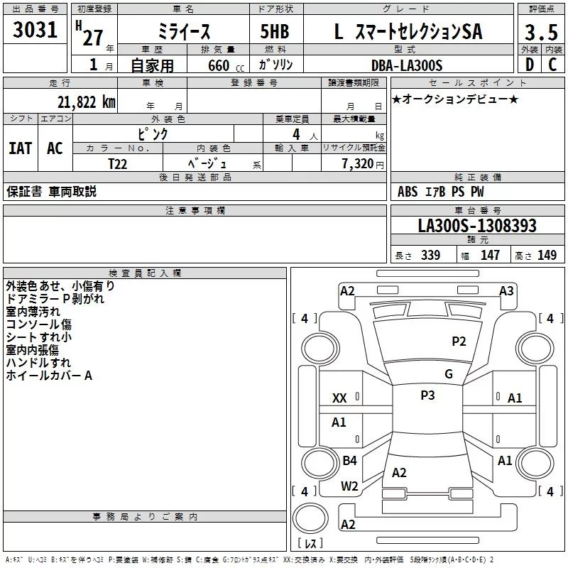 Daihatsu MIRA E S с аукциона Японии TAA Hyogo лот № 3031