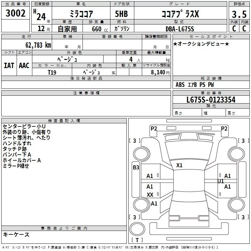 Daihatsu MIRA с аукциона Японии TAA Yokohama лот № 3002