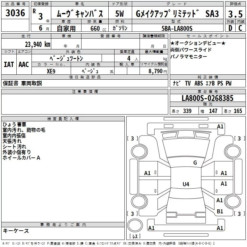 Daihatsu MOVE CANBUS с аукциона Японии TAA Yokohama лот № 3036