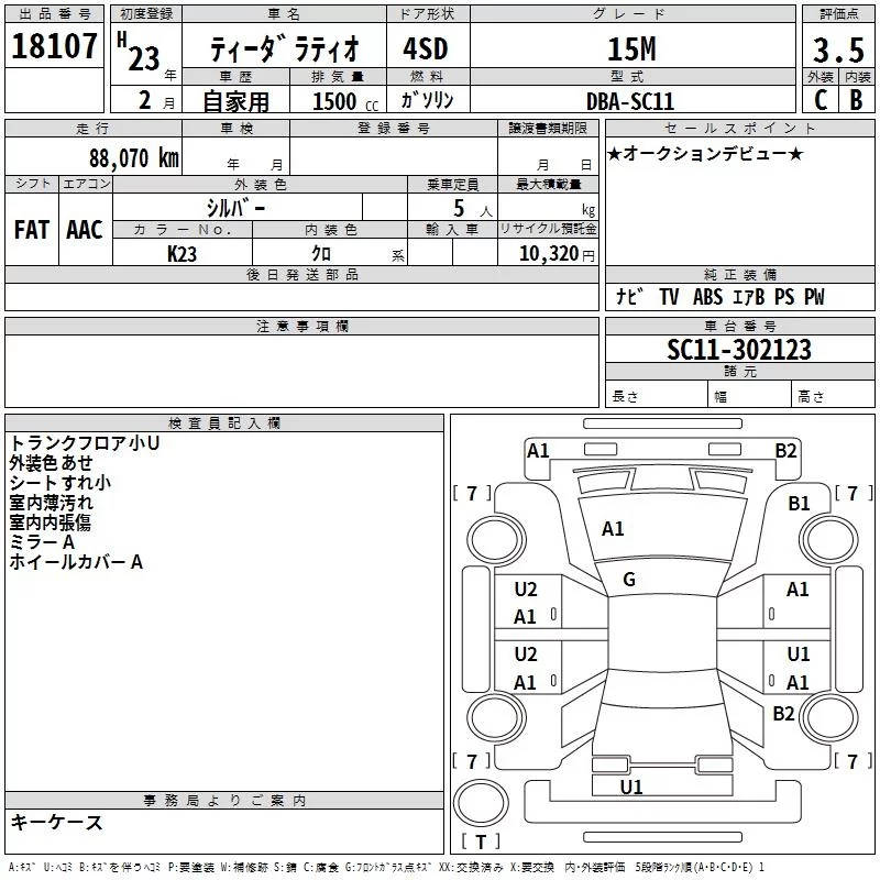 Nissan TIIDA LATIO с аукциона Японии TAA Yokohama лот № 18107