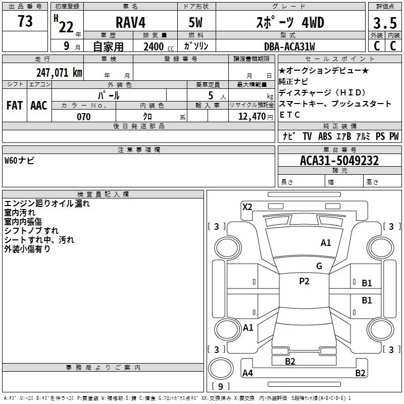Toyota RAV4 с аукциона Японии TAA Hyogo лот № 73