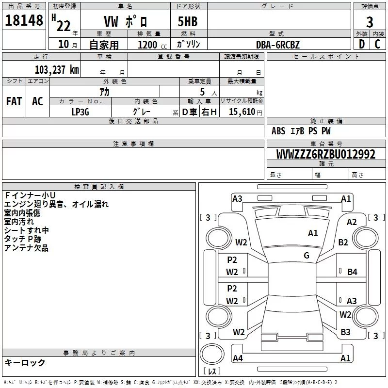 Volkswagen POLO с аукциона Японии TAA Yokohama лот № 18148