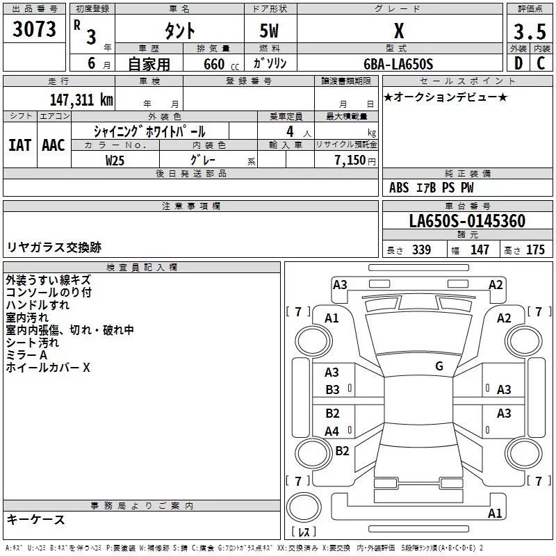 Daihatsu TANTO с аукциона Японии TAA Yokohama лот № 3073