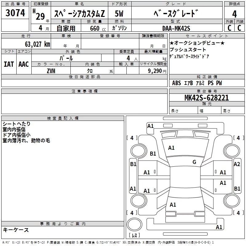 Suzuki SPACIA с аукциона Японии TAA Yokohama лот № 3074