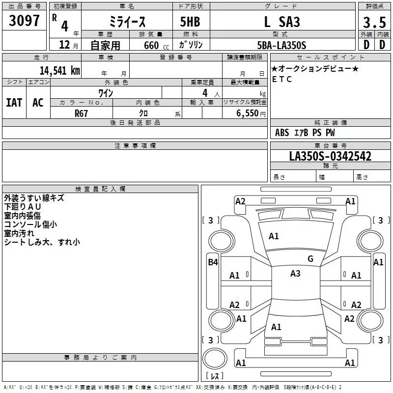 Daihatsu MIRA E S с аукциона Японии TAA Yokohama лот № 3097