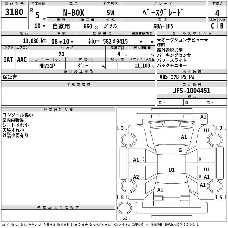Honda N BOX с аукциона Японии TAA Hyogo лот № 3180