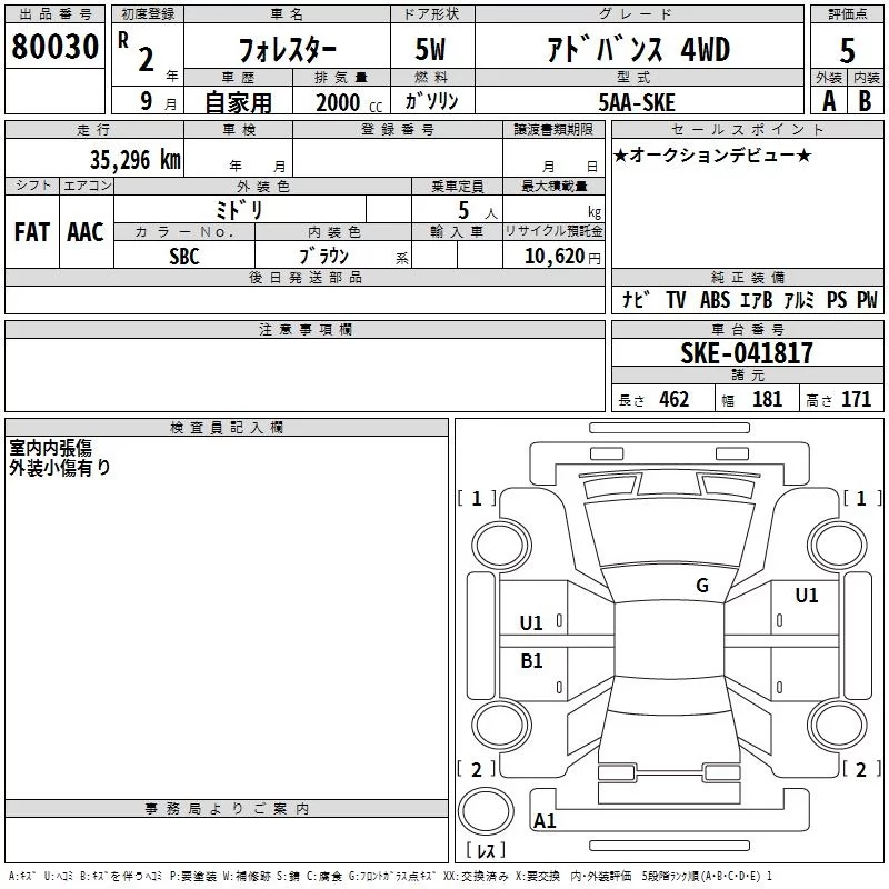 Subaru FORESTER с аукциона Японии TAA Hyogo лот № 80030