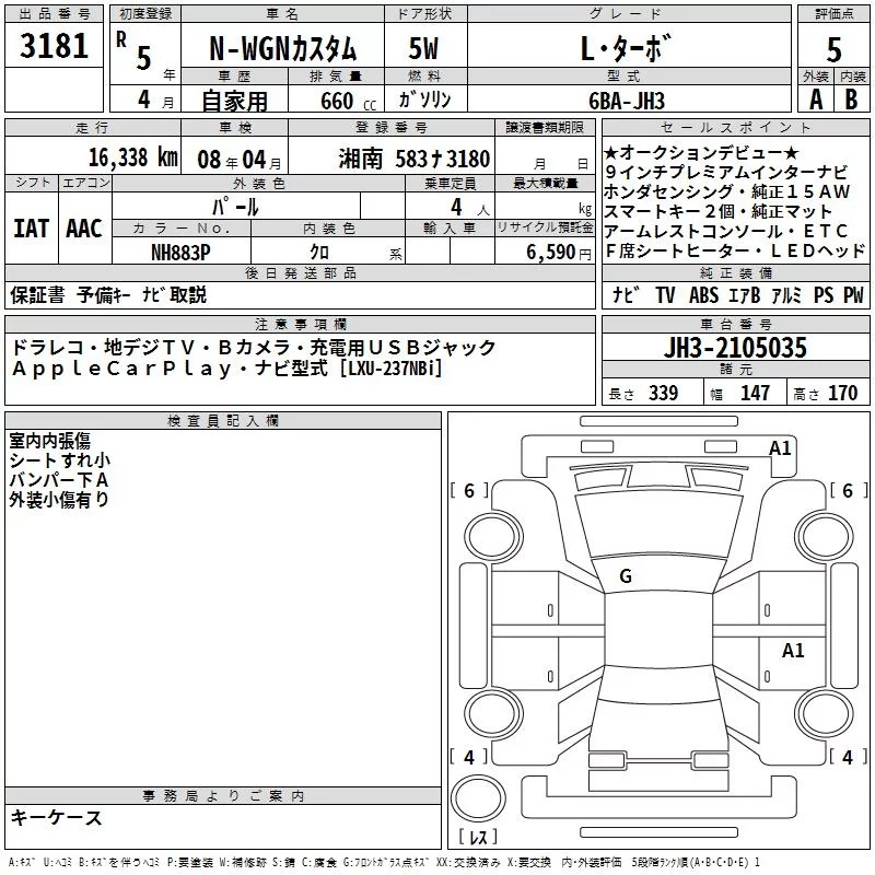 Honda N WGN с аукциона Японии TAA Yokohama лот № 3181