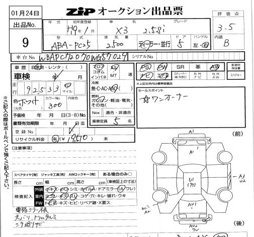 BMW X3 с аукциона Японии ZIP Tokyo лот № 9