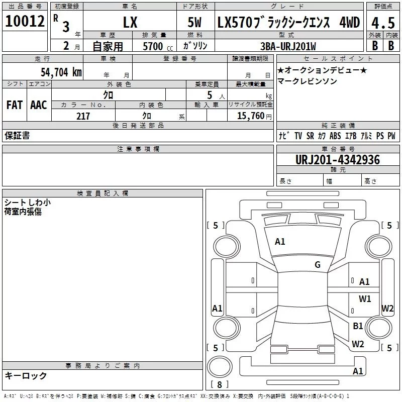 Lexus LX с аукциона Японии TAA Hyogo лот № 10012