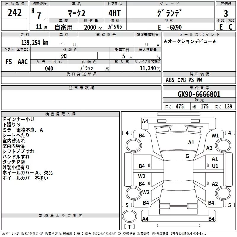 Toyota MARK II с аукциона Японии TAA Hyogo лот № 242