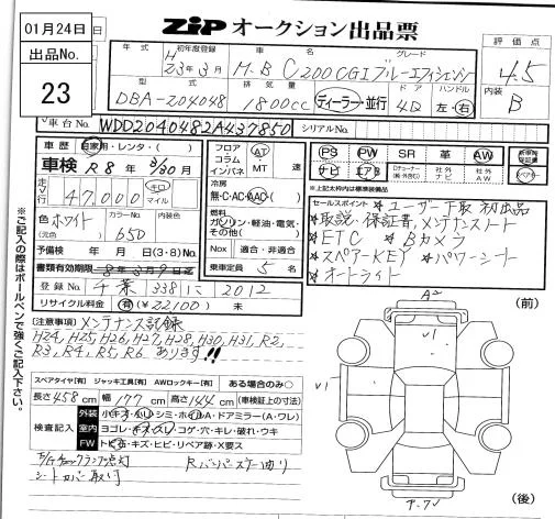Mercedes-Benz C CLASS с аукциона Японии ZIP Tokyo лот № 23