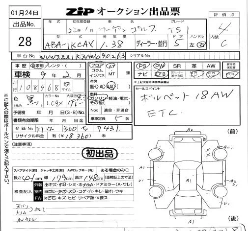 Volkswagen GOLF с аукциона Японии ZIP Tokyo лот № 28