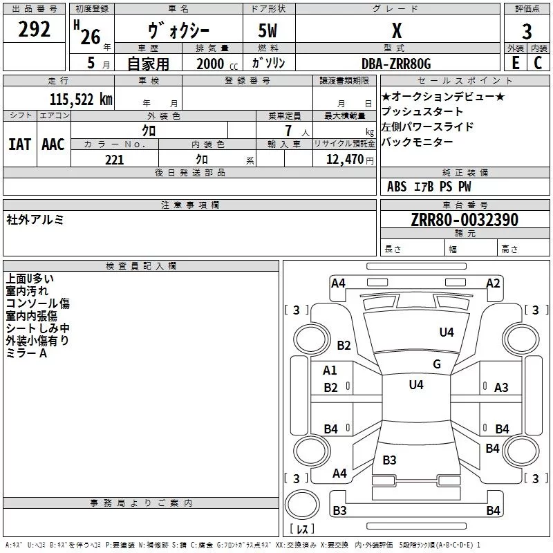 Toyota VOXY с аукциона Японии TAA Hyogo лот № 292