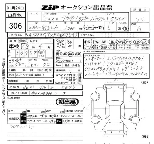 Audi A3 с аукциона Японии ZIP Tokyo лот № 306