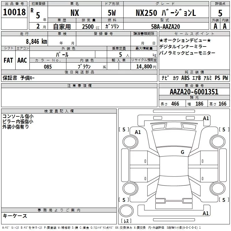 Lexus NX с аукциона Японии TAA Yokohama лот № 10018