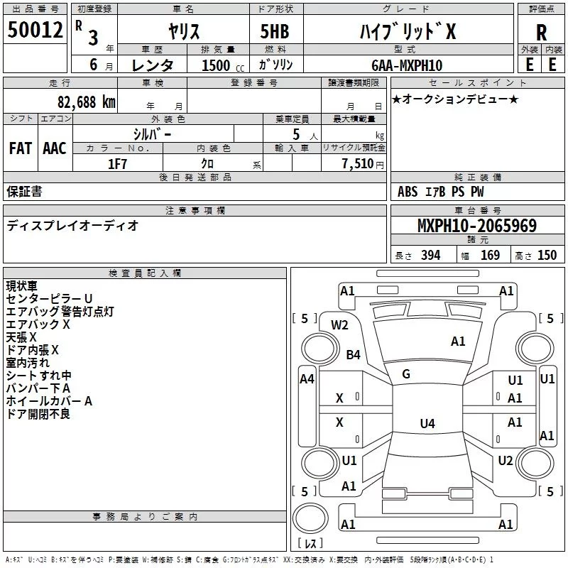 Toyota YARIS с аукциона Японии TAA Hyogo лот № 50012