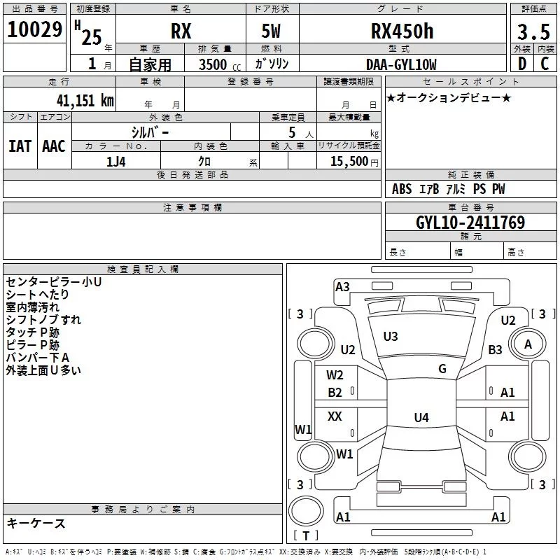 Lexus RX с аукциона Японии TAA Yokohama лот № 10029