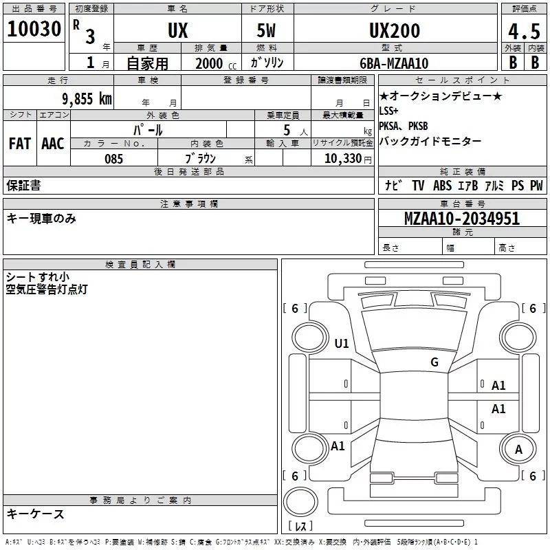 Lexus UX с аукциона Японии TAA Yokohama лот № 10030