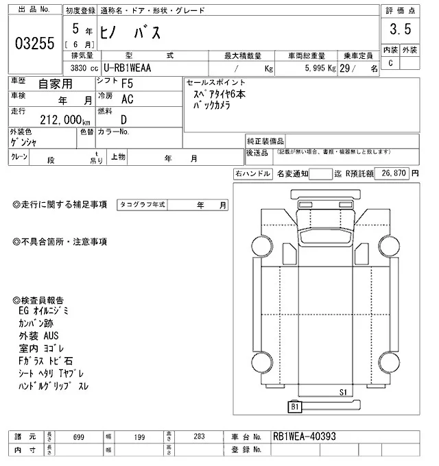Hino BUS с аукциона Японии ARAI Oyama VT лот № 3255