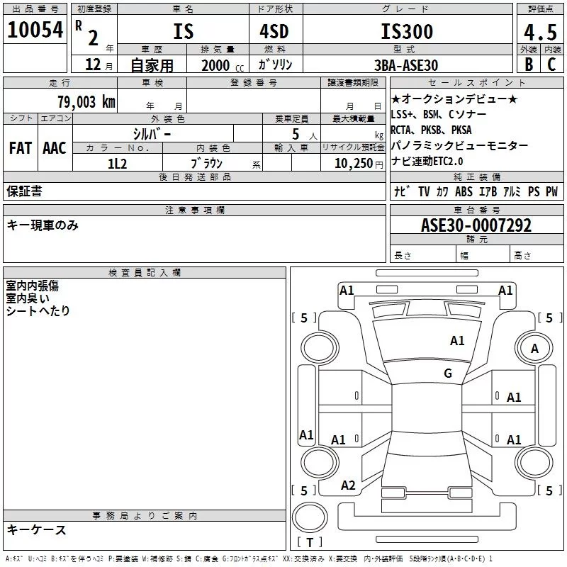 Lexus IS с аукциона Японии TAA Yokohama лот № 10054