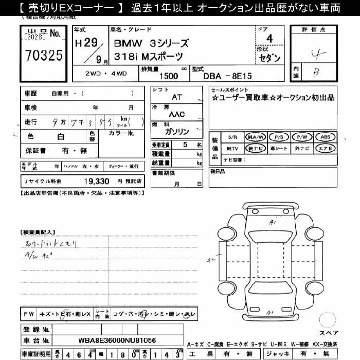 BMW 3-Series с аукциона Японии JU Gifu лот № 70325