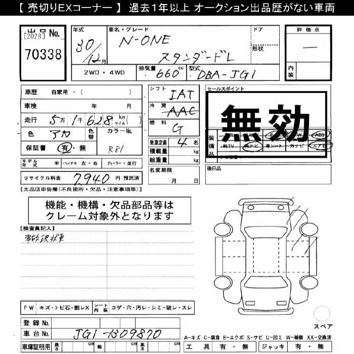 Honda N ONE с аукциона Японии JU Gifu лот № 70338