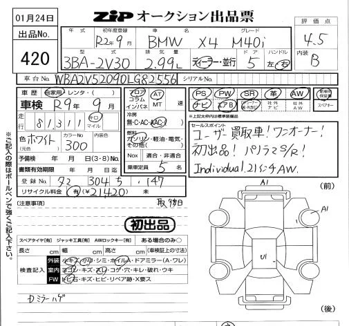 BMW X4 с аукциона Японии ZIP Tokyo лот № 420
