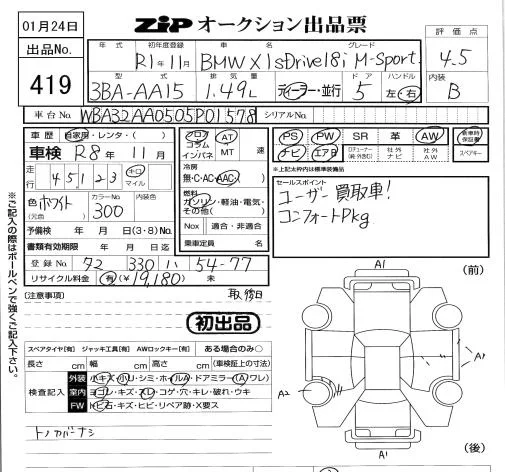 BMW X1 с аукциона Японии ZIP Tokyo лот № 419