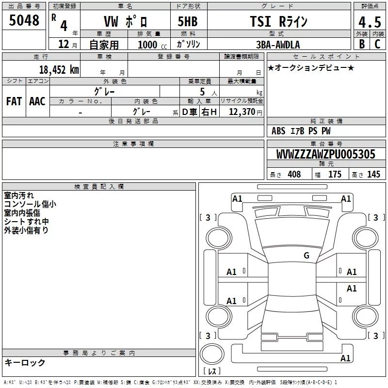 Volkswagen POLO с аукциона Японии TAA Yokohama лот № 5048