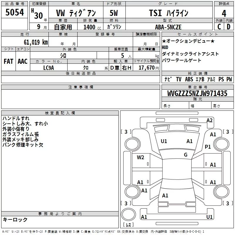 Volkswagen TIGUAN с аукциона Японии TAA Yokohama лот № 5054