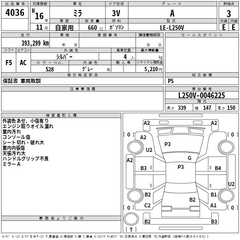 Daihatsu MIRA с аукциона Японии TAA Hyogo лот № 4036