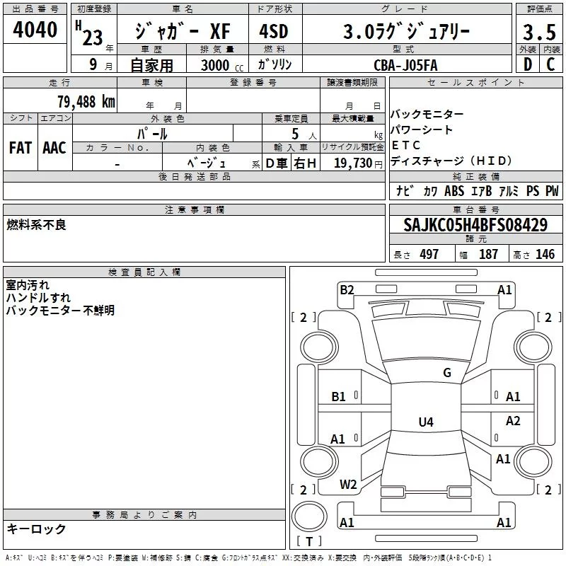 Jaguar XF SERIES с аукциона Японии TAA Hyogo лот № 4040
