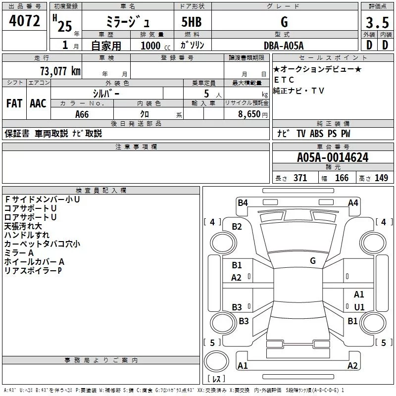 Mitsubishi MIRAGE с аукциона Японии TAA Hyogo лот № 4072